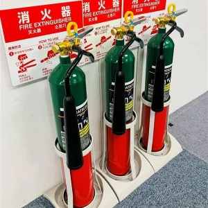 - 各種消火器:電機火災に効果的なハロン消火器、二酸化炭素消火器を設置